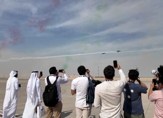 एजेन्सी । संयुक्त अरब इमिरेट्स (युएई) को राष्ट्रिय एरोबेटिक प्रदर्शन टोलीले सोमबार दुबई एयर शो २०२५ मा प्रभावशाली हवाई प्रदर्शन गरेको छ ।