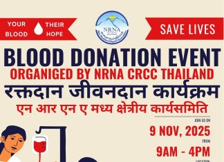 थाइल्याण्डमा गैर आवासीय नेपाली संघको रक्तदान कार्यक्रम आयोजना हुने