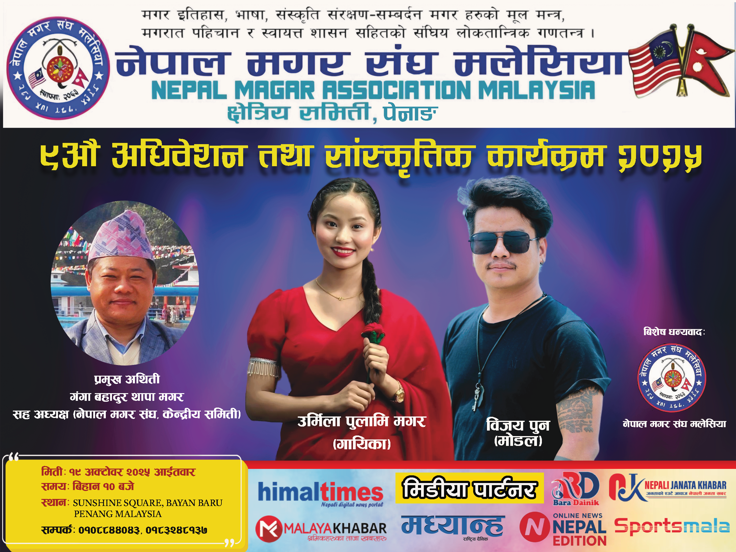 नेपाल मगर संघ पेनाङ क्षेत्रीय समितिले आयोजना गर्न लागेको यो कार्यक्रम केवल अधिवेशन मात्र नभई, सांस्कृतिक विविधता, परम्परा र एकताको उत्सव हुने आयोजक समितिको विश्वास छ।
