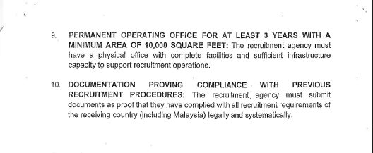 मलेसियाको मानव संसाधन मन्त्रालयले १५ नोभेम्बर २०२५ भित्र मापदण्ड पूरा गर्ने म्यानपावर कम्पनीहरूको विवरण पठाउन अनुरोध गरेको छ। ती मापदण्डमा समावेश प्रमुख बुँदाहरू यसप्रकार छन्ः
