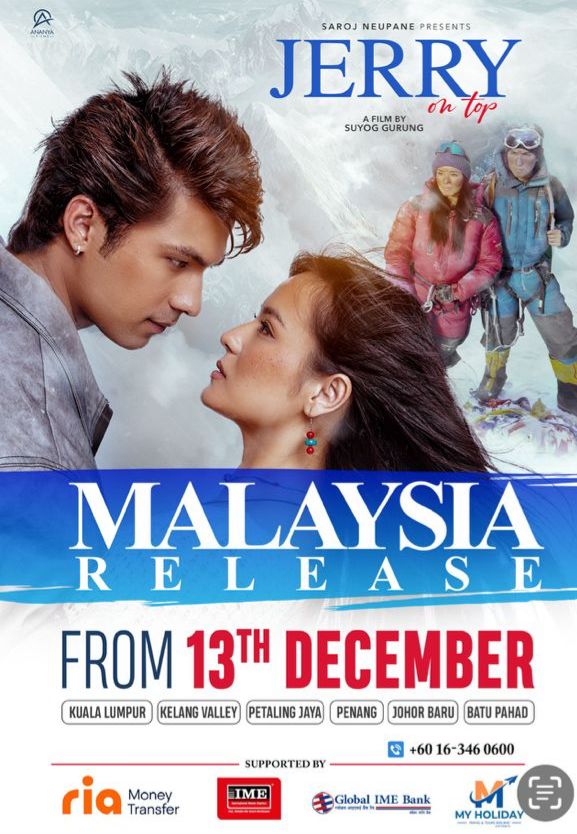 काठमाडौं। घरेलु बक्स अफिसमा १२ करोड रुपैंयाभन्दा बढी कमाइ गर्दै ठूलो व्यापारिक सफलता हासिल गरेको फिल्म ‘जेरी अन टप’ अब मलेसियामा पनि प्रदर्शन हुने भएको छ। फिल्म डिसेम्बर १३ (शनीवार) देखि मलेसियाका प्रमुख शहरका हलहरूमा रिलिज हुने निर्माण पक्षले जानकारी दिएको छ।
