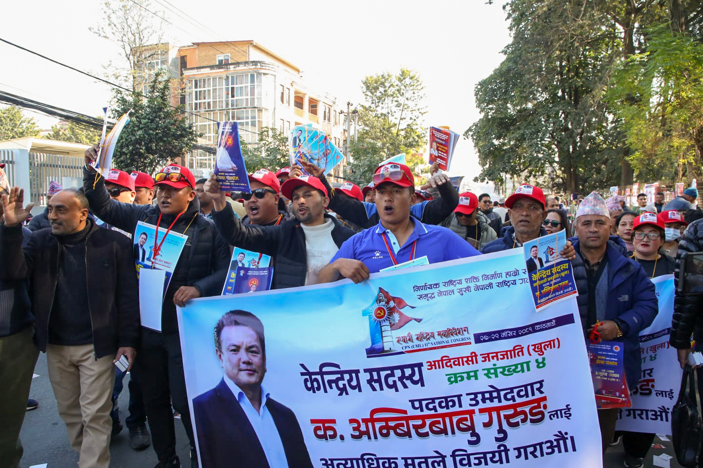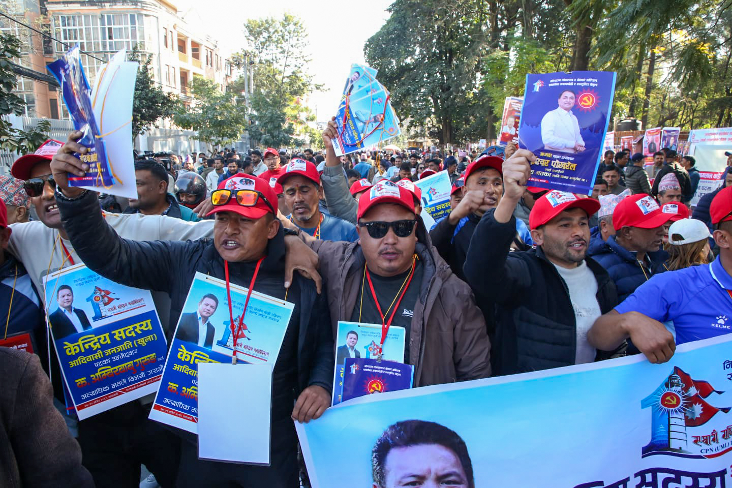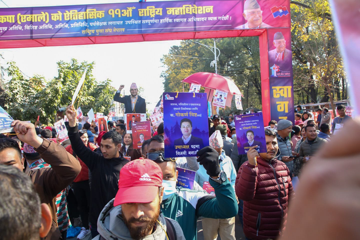 नेकपा एमालेको नयाँ नेतृत्व चयनका लागि मतदान हुँदैछ । ११ औँ महाधिवेशनको मतदान स्थलमा निवर्तमान अध्यक्ष केपी शर्मा ओली र निवर्तमान वरिष्ठ उपाध्यक्ष ईश्वर पोखरेलले अध्यक्षको उम्मेदवार भएसँगै उनीहरुबीच प्रतिस्पर्धा हुने भएपछि नेताहरू अहिले भोट माग्न व्यस्त छन् । ५ जना उपाध्यक्ष पदका लागि ११ जनाको उम्मेदवारी रहेको छ भने महासचिव पदका लागि शंकर पोखरेल र सुरेन्द्र पाण्डे भिड्दै छन् । महाधिवेशन स्थल प्रचार प्रसारका सामग्रीले रङगीचङगी देखिएको छ ।
