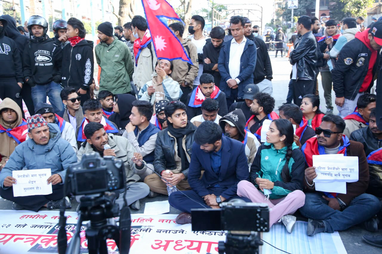 प्रधानमन्त्री सुशीला कार्की र गृहमन्त्री ओम प्रकाश अर्यालको राजीनामा माग गर्दैै अन्तरिम सरकारलाई दबाब दिन गत सोमबारदेखि उनीहरुले शान्तिपूर्ण आन्दोलन सुरु गरेका हुन् ।
