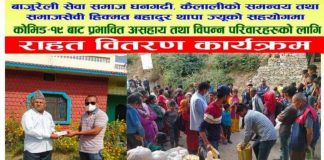 बाजुरेली सेवा समाजको समन्वयमा हिक्मत थापाको विपन्नलाई खाद्यान्न सहयोग
