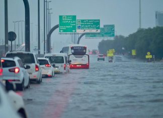 भारी वर्षापछि दुबईका राजमार्गहरू बाढीले अवरुद्ध