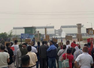 लामिछानेलाई भैरहवा पुर्याइयो, विमानस्थल बाहिर रास्वपाका कार्यकर्ताको प्रदर्शन