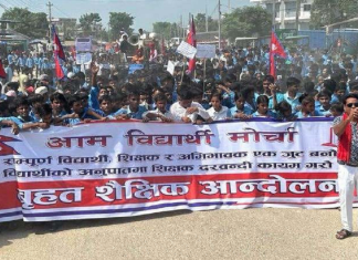 रौतहट । प्रभु साह नेतृत्वको आम जनता पार्टी निकट आम विधार्थी मोर्चाको अगुवाईमा विधार्थीको अनुपातमा शिक्षकको माग गर्दै सडक आन्दोलनमा उत्रेका छन् ।