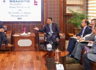 काठमाडौं । अर्थमन्त्री बर्षमान पुनसँग मिलेनियम च्यालेन्ज कर्पोरेशन (एमसीसी) उपाध्यक्ष जोनाथन ब्रुक्सले भेटवार्ता गरेका छन् ।