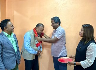 उनलाई आजपा अध्यक्ष साहले टिका खादा लगाएर स्वागत गरे। पार्टीमा स्वागत...