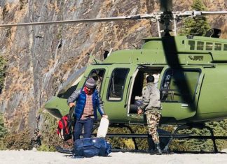 बझाङमा सेनाको हेलिकप्टरबाट मतपेटिका संकलन गरिदै