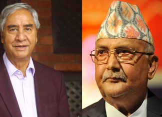 आइतबार साँझ प्रधानमन्त्री केपी ओली, नेपाली कांग्रेसका सभापति शेरबहादुर देउवा, एमालेका...