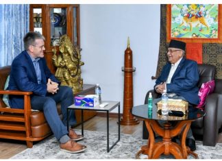 काठमाडौं । नेकपा एमालेका अध्यक्ष केपी शर्मा ओली र अमेरिकी राजदूत डिन आर थम्पसनबीच भेटवार्ता भएको छ।