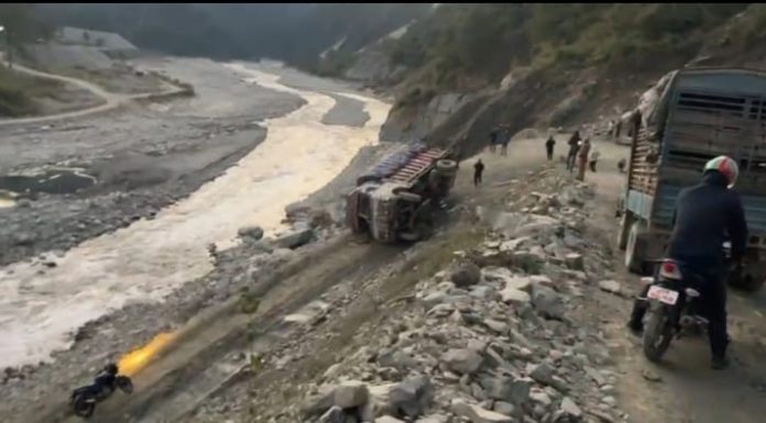 मकवानपुर । मकवानपुर जिल्लाको भीमफेदी गाउँपालिका–८, बगुवा स्थित कान्तिलोकपथ सडकखण्डमा आज बिहान ट्रक दुर्घटना भएपछि सडक पूर्ण रूपमा अवरुद्ध भएको छ।