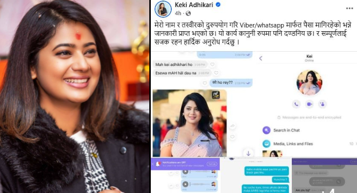 नाम र तस्बिर दुरुपयोग गरी भाइबर र व्हाट्सएपमार्फत पैसा मागिएको भन्दै केकी अधिकारीको आपत्ति