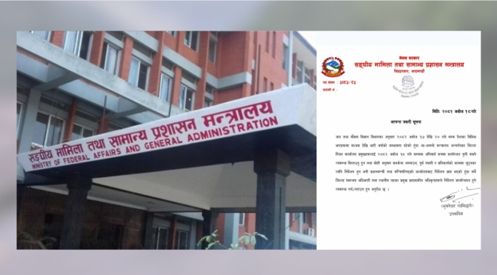 प्रधानमन्त्री तथा मन्त्रिपरिषद्को कार्यालयबाट प्राप्त निर्देशनअनुसार मन्त्रालयले असोज १८ गतेभित्र सबै जिल्लास्थित कार्यालय प्रमुखहरूले कार्यस्थलमा पुगिसक्ने व्यवस्था मिलाउन भनेको हो ।